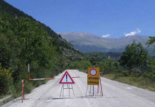 Durch jede Menge Dörfchen fahrend wird die Piste langsam breiter, Umgehungs-tunnels kommen, der Trubel nimmt zu. Danach wieder einsam und unwegsamer rauf und runter bis das bekannte Roccamorice wieder erreicht ist.