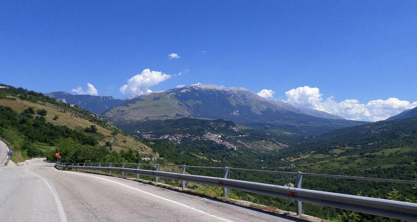 Bis Campo di Giove (1100 mNN) fällt die Straße sanft mit netten Blicken.